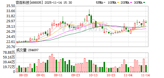 截至11月14日收盘,容百科技股价报29.50元/股,跌幅达1.86%,总市值为210.8亿元。