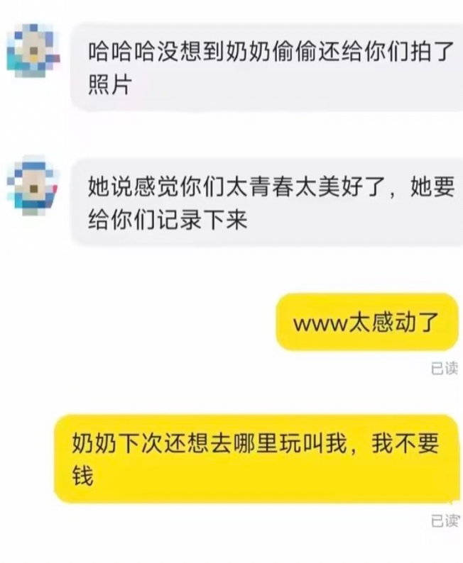 短短一天的相处,这份雇佣关系也在悄然转化,小C直言,如果有机会,下次还想陪伴奶奶一同出门——“下次免费!”
