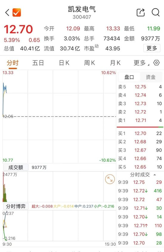 11月26日开盘,凯发电气股价大涨,截至发稿报12.70元/股。
