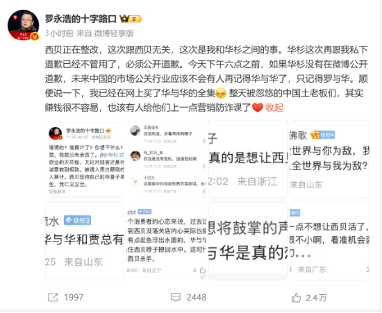 “今天下午6点之前,如果华杉没有在微博公开道歉,未来中国的市场公关行业应该不会有人再记得华与华了,只记得罗与华。”