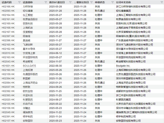 浙江力积存储科技股份有限公司、驭势科技(北京)股份有限公司、上海凯诘电子商务股份有限公司、北京深演智能科技股份有限公司、深圳市飞速创新技术股份有限公司、深圳基本半导体股份有限公司、环世国际物流控股有限公司、北京先通国际医药科技股份有限公司、北京乐自天成文化发展股份有限公司、深圳市华曦达科技股份有限公司、安联国际控股有限公司等11家公司的申请失效。